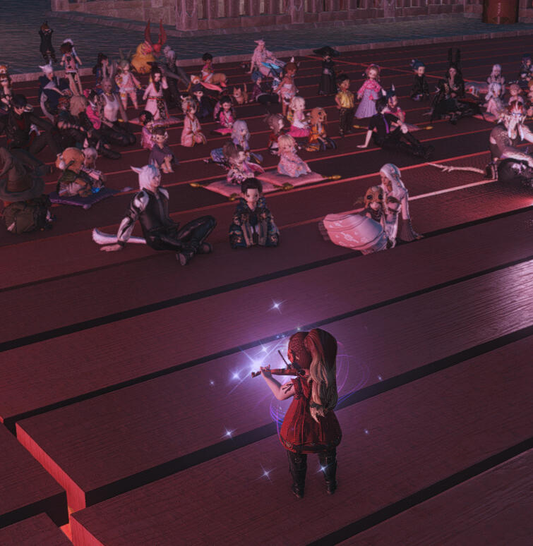 𝄞₊ ⊹ I'm a solo bard with 20+ years of real-world music experience and about 2 years of in-game barding experience.♪ ༘⋆ I'm an amateur MIDI editor as well, and will add to this page once I start adding songs to the bard repository.*ੈ✩‧₊˚ I'm both an in-character and out-of-character bard. If you want a more immersive setting, then I don't mind casual, SFW roleplaying. If you simply want a music player, then that can be arranged!⭑♪⊹ ࣪ I currently perform every other week at the Mouldy Tuba, and am an admin/event runner for Oschon's Refuge (RP-heavy adventurer's academy and guild setting).♪♫~ Music is one of my greatest passions, and I'm glad I'm able to bring some of that joy to one of my favorite games and communities!𝄞♫⊹˚ Want to hire me or talk more about a gig? My discord is: LadyKrys